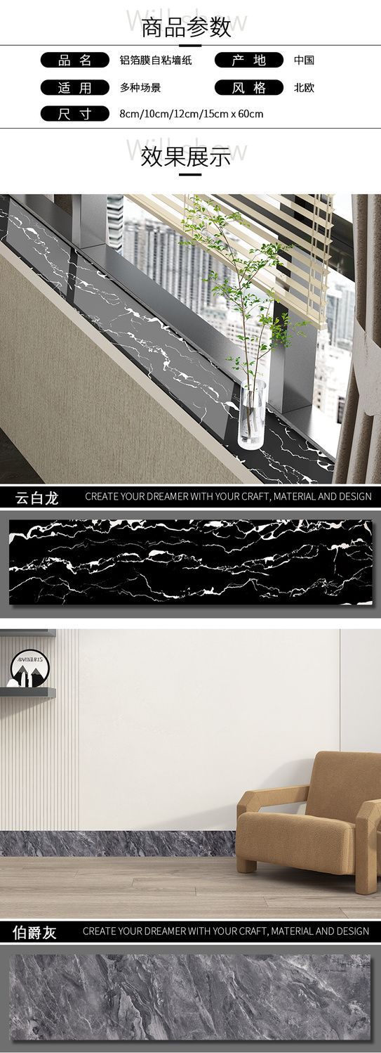 6厘米宽*60厘米长/1片 / 卡拉灰【加厚】自粘款6厘米宽*60厘米长/1片,卡拉灰【加厚】自粘款
